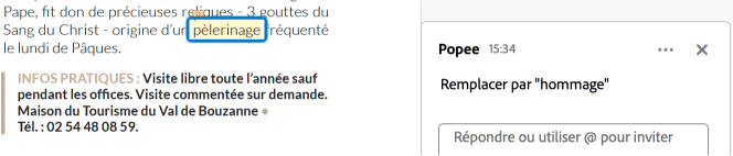 - les remarques particulières (en lien avec une page précise, une photo, un texte) en pdf commenté. Cela est beaucoup plus facile à comprendre que quand c’est formulé. Cela donne ça :