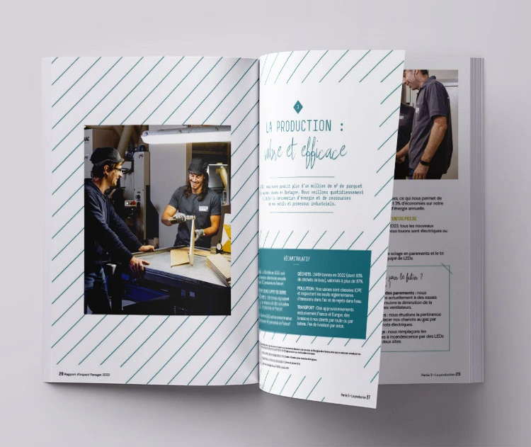 Je suis fière de vous présenter le premier rapport d’impact de Panaget, mon presque voisin fabricant de parquets. C’est un premier document, un gros chantier préalable au futur rapport RSE en bonne et due forme.